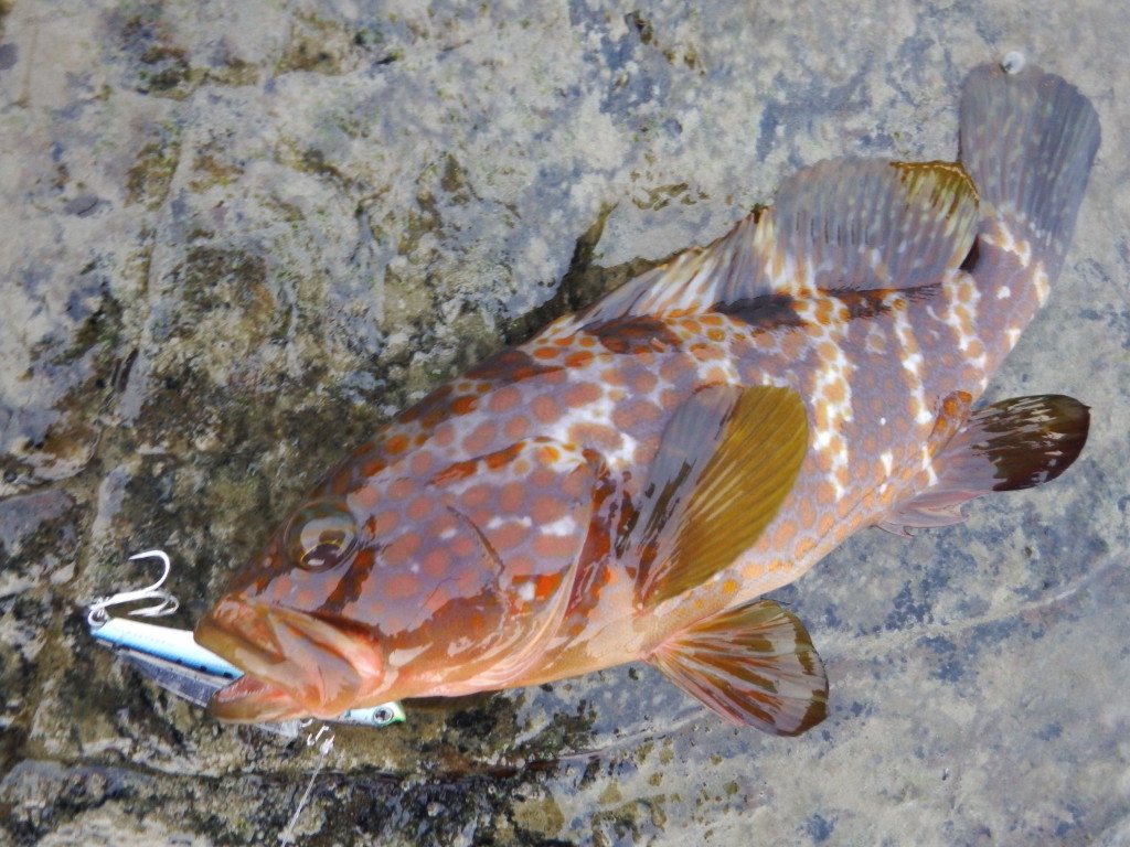 ボトムを探るとオオモンハタも釣れてくれましたよ![]()