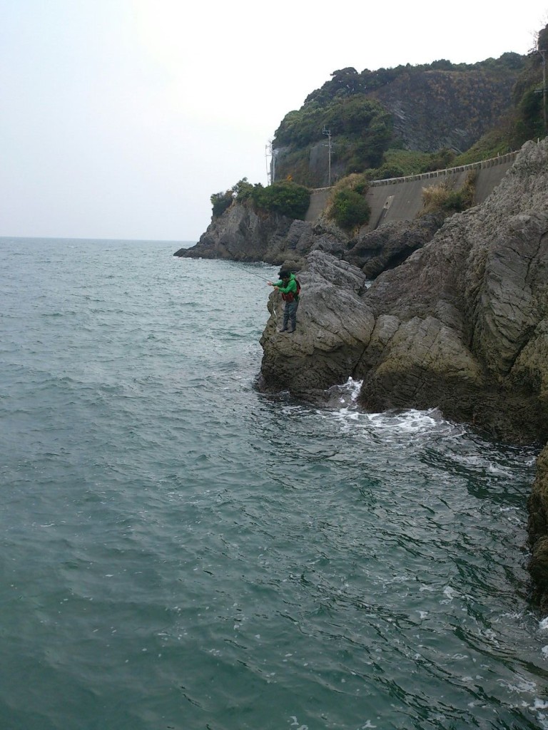 ここで朝、北園君がサゴシをキャッチした御手水の地磯へ移動![]()