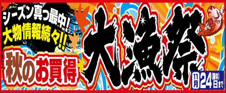 只今、山本釣具センターでは秋のお買得大漁祭 開催中です(^^)/ 皆様のご来店お待ちしています(^_^)