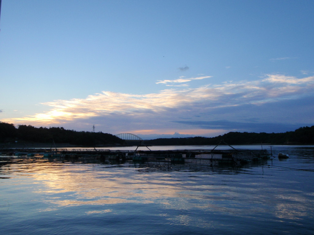 (イカダからの眺めです。穏やかな海、絶好の釣り日和ですな