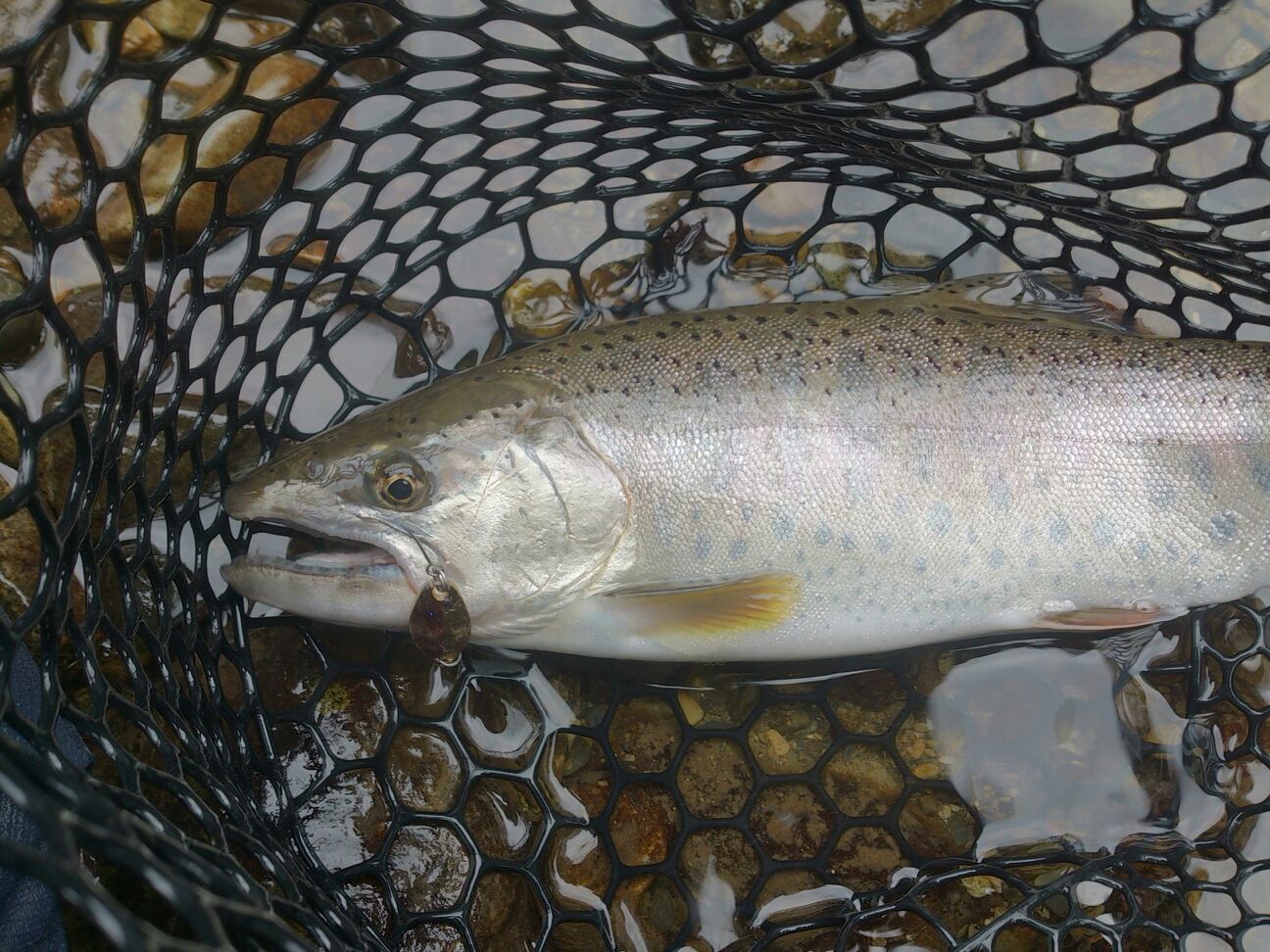まず36センチのヤマメが咥えているのが、スミスのピュア3.5グラム、カラーGR