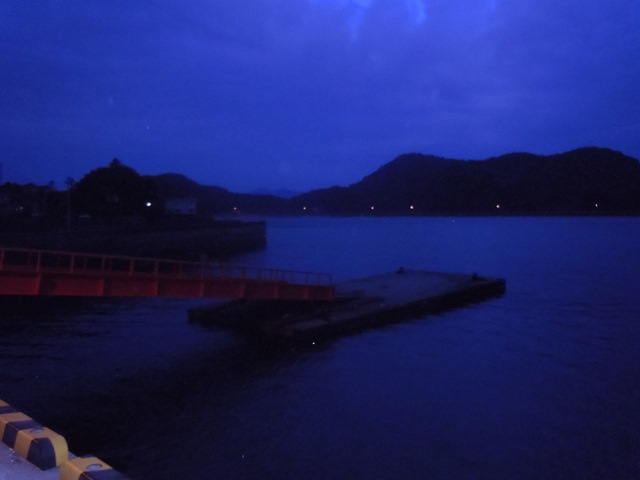 樋島港は、外灯があり、夜は明るく