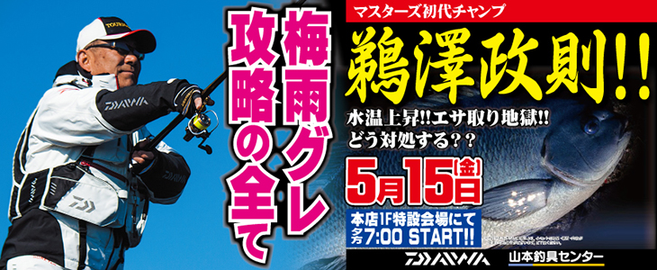 山本釣具センター本店では、本日5月15日(金)に鵜沢正則氏による