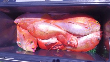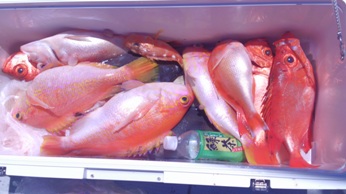 移動してすぐにアカイサキの40~50cmクラス(オスばかり)