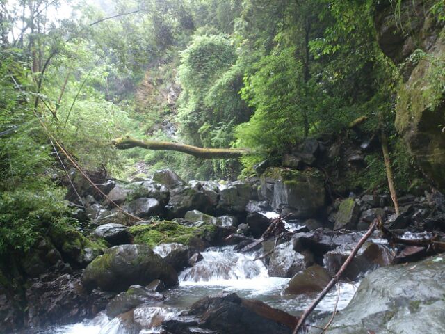 その下はかなり釣れそうな感じでしたが残念ながらヤマメの反応が無く、納竿の時間も迫っていたので、ここで場所移動![]()