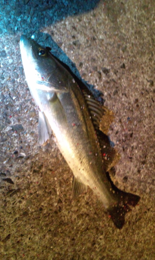 小さいのはリリースし今度はなんとセイゴ(40cm)が釣れ、セイゴの引きで楽しみました。