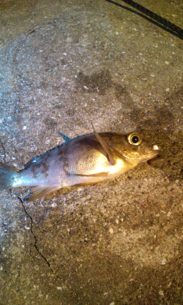 さっそく一投目でメバル18cmぐらいのが釣れて