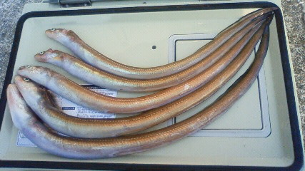 夜のブッ込釣りでは、アナゴ釣れ