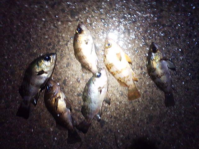落し込みですぐに12cm~18cm前後のメバルが5匹とフカセで4匹釣れたものの、