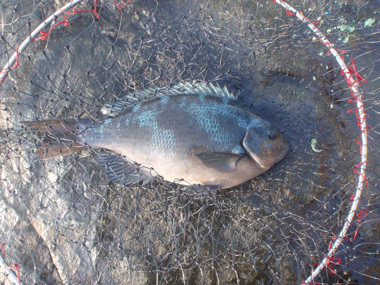 二度三度と、魚が突っ込みますが、じぃーっとためてると暴れていた魚がおとなしくなるんですネ![]()