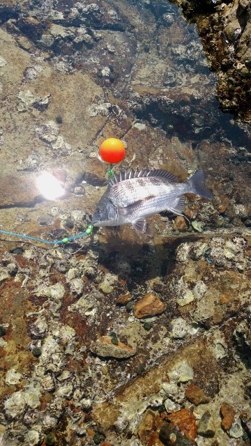 なんと1投目で、私が30㎝のチヌをGET![]()