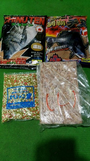 生沖アミ(L)サイズ1枚にヒロキューの制覇チヌ1袋とチヌTEN1袋