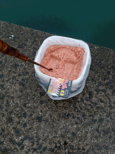 マキエは、赤アミ1/8角とパン粉2㎏にアジ用集魚材を1袋混ぜるだけ☆