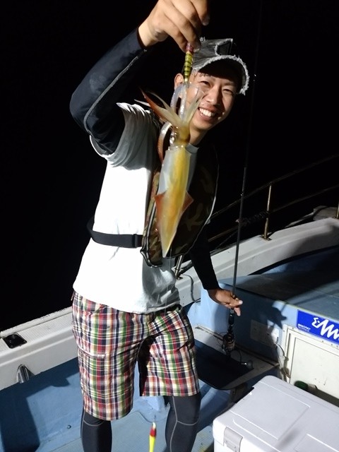 それに続いて初チャレンジの塩田君にも赤イカHIT