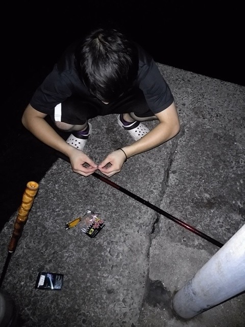 エサの付け方、鈎の付け方から・・・