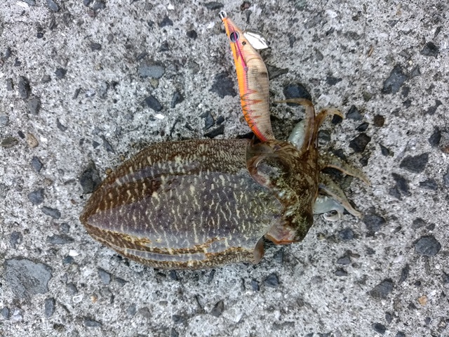 上げてみると300gオーバーのアオリイカGETです‼