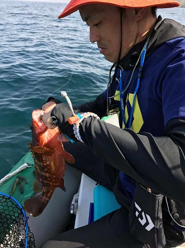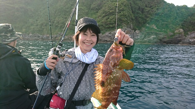 たまにアタリがあり、掛かるも小さなアカハタ・ガラカブばかり・・・![]()