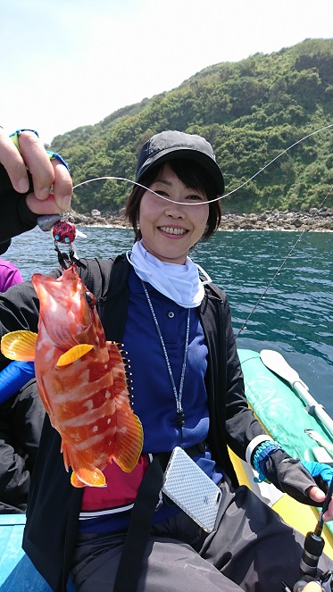なんでしょう・・・ボーターズでは初めての者は必ずキジハタが掛かるというジンクスが・・・(笑)![]()