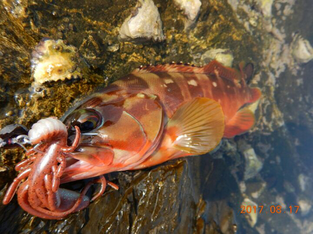 今回良型はアカハタ1匹でしたが、小さいながらも良く引くロックフィッシュはサイコーに面白いですよ![]()