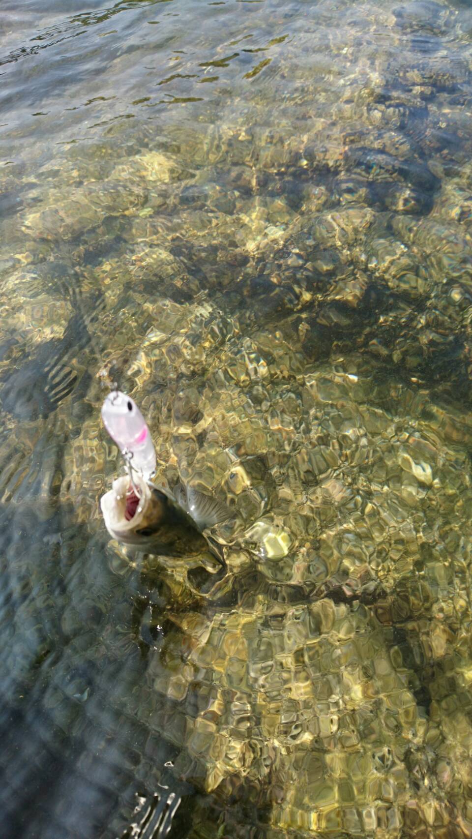 18cmほどのセイゴをクロナッツ(タックルハウス)で釣った![]()