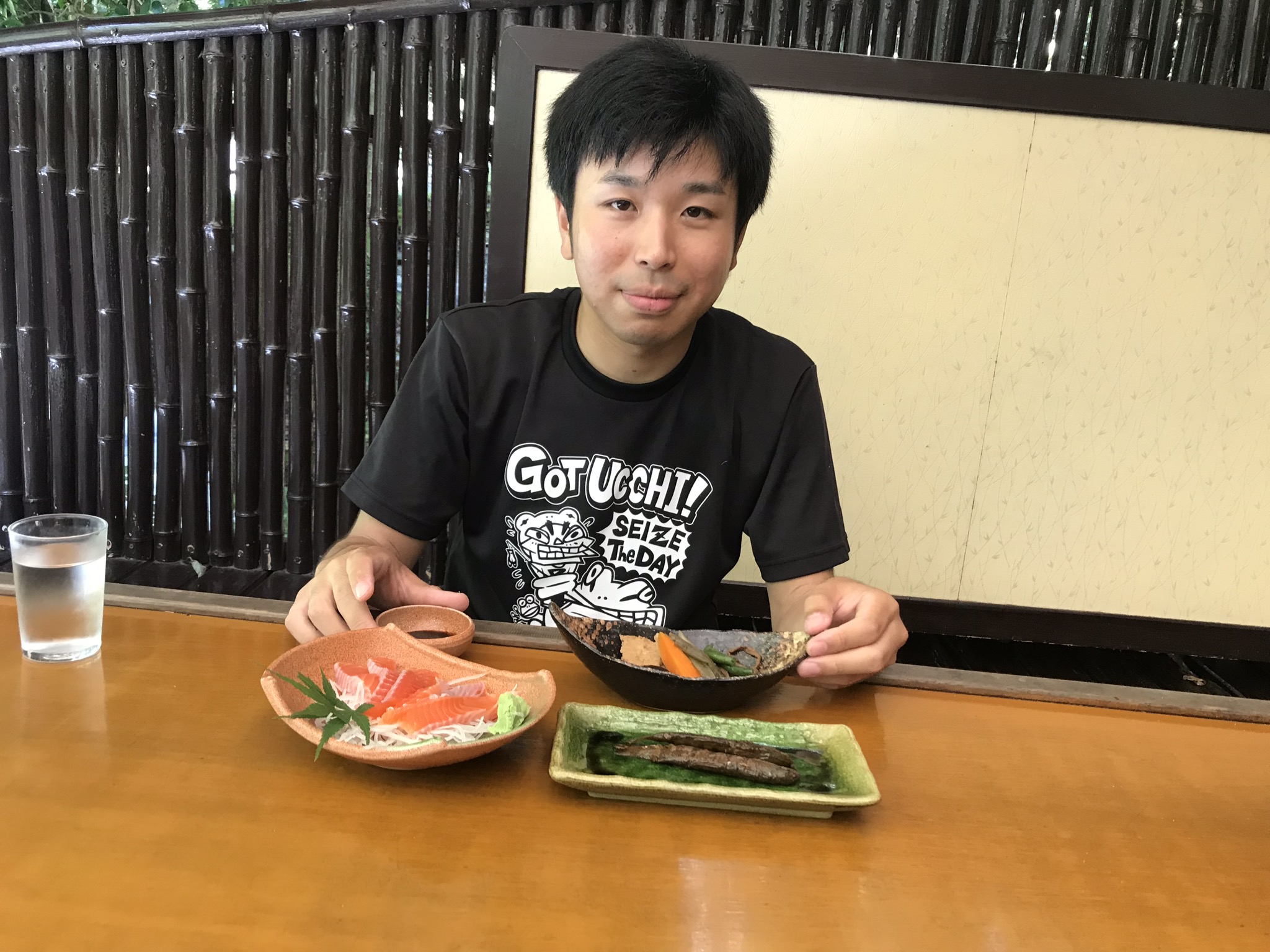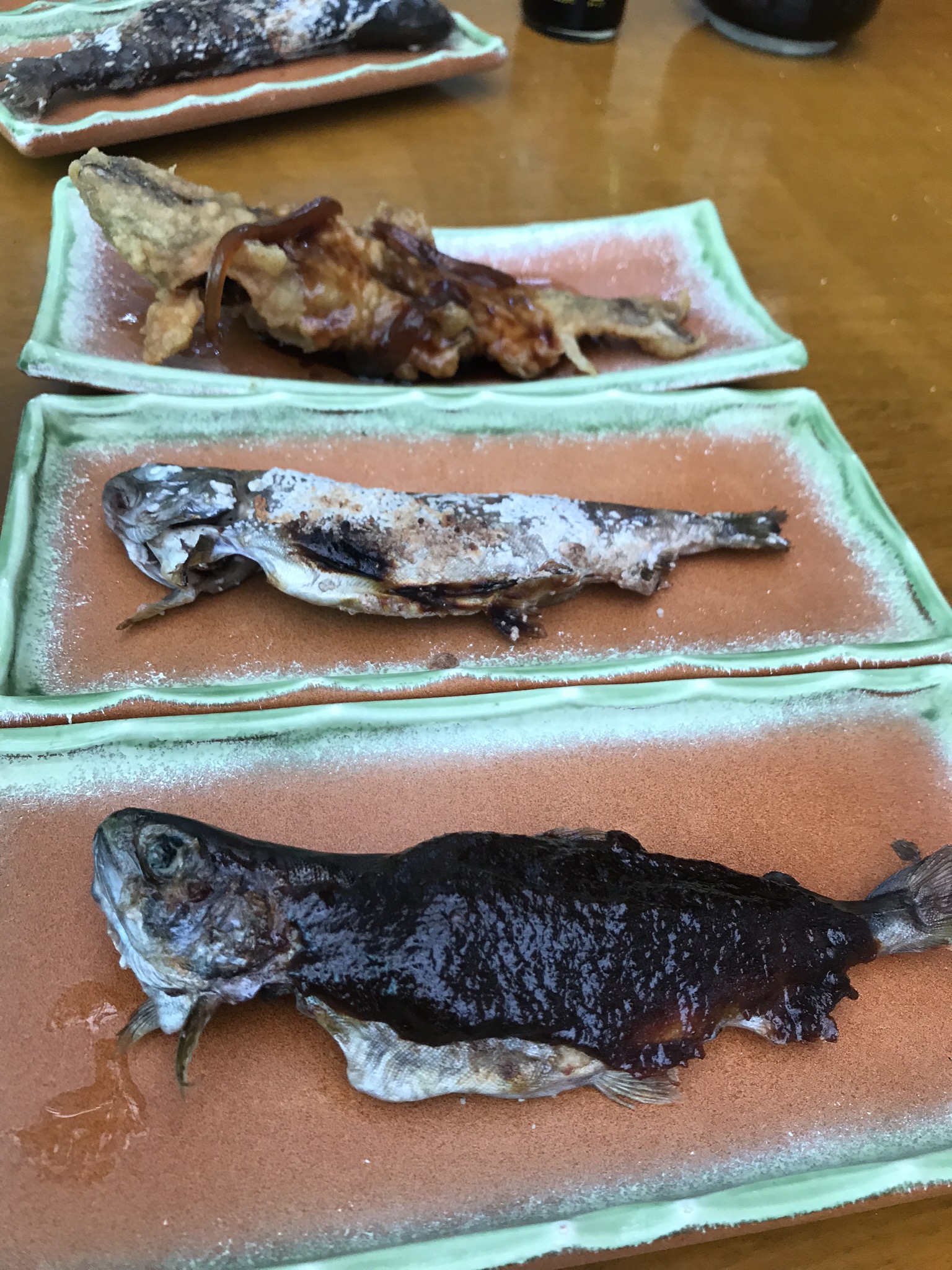 途中、ヤマメ定食を食べ。