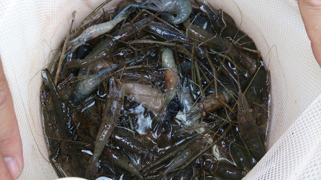 唐揚げや煮付けで美味しい手長エビが緑川で釣れだしました(V)o¥o(V)