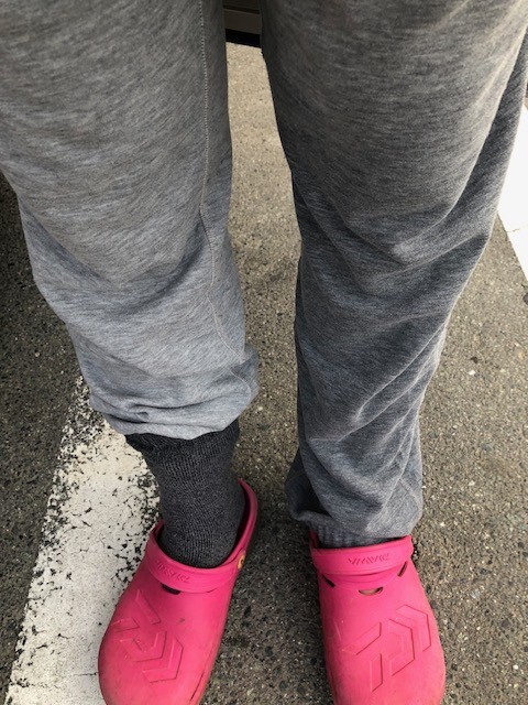 左膝が破けていて浸水し、