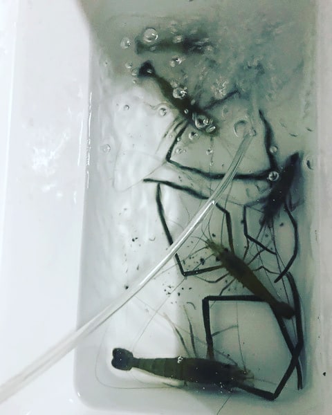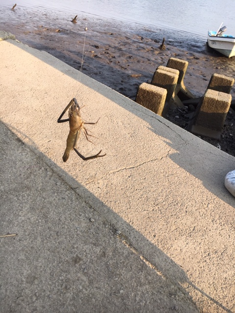 すぐに、小さめですが手のひらくらいの手長エビが釣れました。