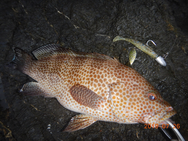 大本命の良型オオモンハタ〜