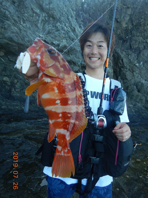 結果オオモンハタは1本でしたがアカハタは10匹以上釣れ、シイラ2匹にガラカブ数匹と大満足の瀬渡し釣行となりました![]()