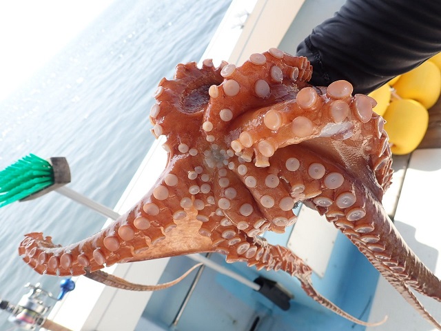 船からのタコエギ![]()