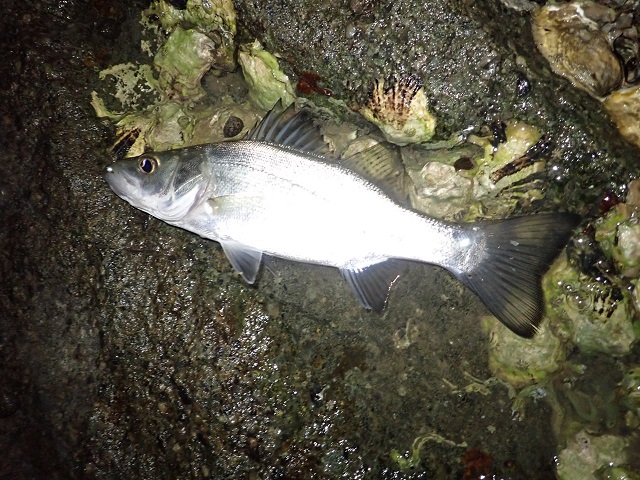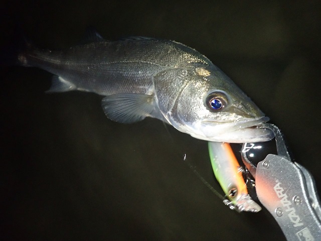 思っていた感じと違い細めな50センチ台のシーバスちゃん![]()