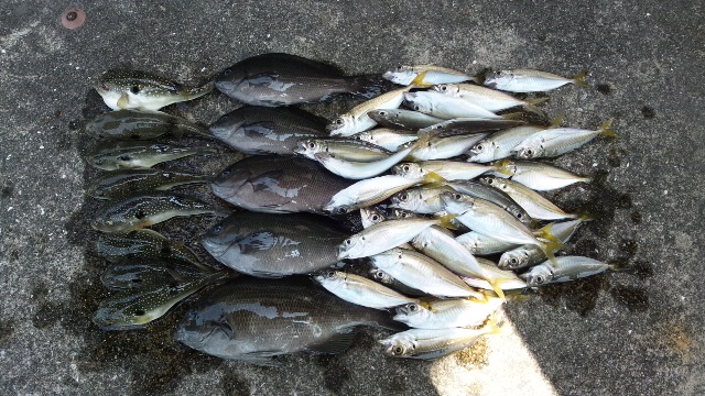 いい感じで釣れ2時間でアジゴ50匹以上とクロ5匹の釣果で楽しめました![]()