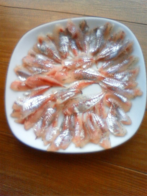 皿に綺麗に盛り付ければ、見た目も綺麗なアジゴの刺身です![]()