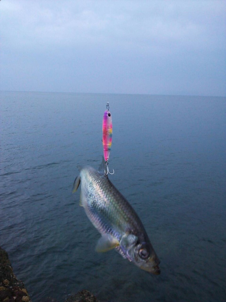 潮がゆるい場所でメタルジグを投げていると![]()