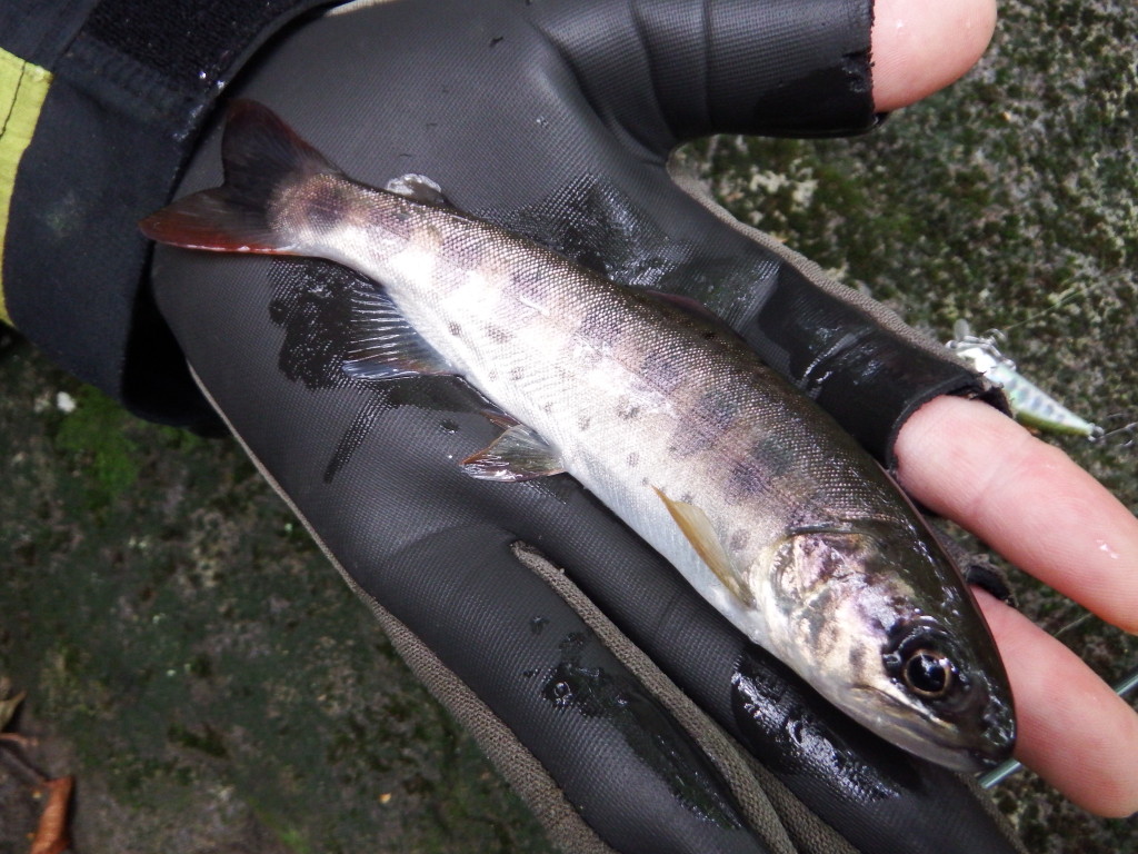 O君が釣ったヤマメです